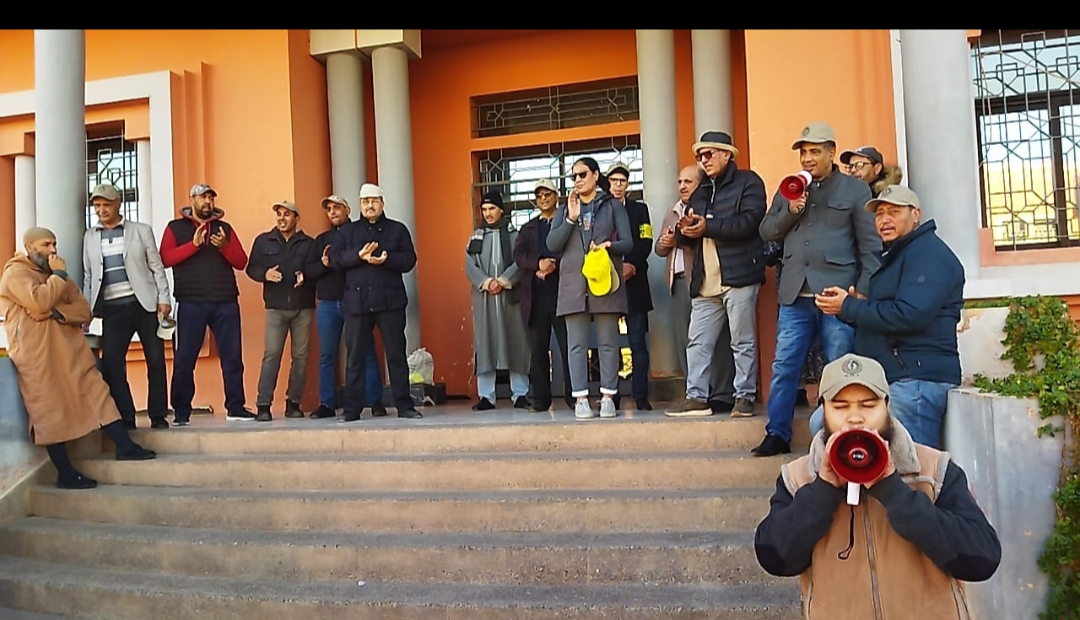 -النقابة الوطنية للجماعات الترابية والتدبير المفوض المنضوية تحت لواء CDT و الجامعة الوطنية لموظفي الجماعات و التدبير المفوض المنضوية تحت لواءUMT، ردد خلالها المحتجات و المحتجون شعارات احتجاجية تدين
