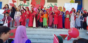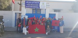 انطلقت الأنشطة صباحًا ، لتشهد المدرسة أجواء حماسية رفعت خلالها الأعلام الوطنية وردد التلاميذ النشيد الوطني وشعارات المسيرة الى جانب اناشيد و أغاني وطنية تبرز الملحمة الوطنية في ظل قرار الامم المتحدة القاضي بمباركة الحكم الذاتي و طي هذا الملف لتبقى الصحراء المغربية في مغربها لتنطلق مسيرة نموذجية مصغرة وسط ساحة المدرسة تم تأثيثها بالأعلام الوطنية والأشرطة الملونة و منها إلى خارج فضاء المؤسسة لتجنب الشارع العام و تعود إدراجها الساحة ليبلغ بعدها التلاميذ و الأطر التربوية في عروض فنية ولوحات تعبيرية جسدها التلاميذ، حيث تألقوا في أداء مشاهد تحاكي لحظات انطلاق المسيرة الخضراء تحت قيادة الملك الراحل الحسن الثاني طيب الله ثراه ،كما تم تنظيم حفل بهيج في ساحة المؤسسة معبرين بكل فخر و اعتزاز بالأعلام الوطنية الحمراء, التي ازدانت بها ساحة المؤسسة المعبرة عن الروح الوطنية والانتماء للمملكة وبالصحراء المغربية…