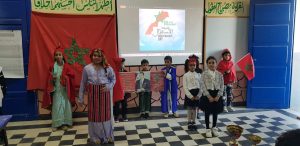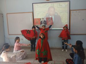 بتنسيق مع فضاء الذاكرة التاريخية للمقاومة والتحرير من خلال جهاز العاكس الضوئي عرضا مستفيضا قرب فيه السيد زوهير قيم الفضاء المتعلمين من حجم التضحيات التي بذلها الأجداد في سبيل هذا الوطن العزيز، وبأهم المنجزات التي تم الشروع فيها مباشرة بعد نيل الاستقلال و استكمال الوحدة الترابية، إلى جانب التعريف بالسلاطين العلويين بدء من السلطان مولاي الشريف و انتهاء بصاحب الجلالة الملك محمد السادس و أهم رموز الحركة الوطنية و العمليات الفدائية و الدور البطولي للملك الراحل محمد الخامس والتحام للأمة، ذكرى كفاح شعب توحد وراء ملكه، والتي يعد الاحتفاء بها مناسبة للأجيال الصاعدة لإدراك حجم التضحيات التي بذلها أجدادهم للتحرر من جور الاستعمار واسترجاع المغرب لاستقلاله. كما عرف اليوم تنظيم صبيحة تخللتها مجموعة من العروض الفنية و الاستعراضية من لوحات راقصة و أناشيد وطنية و مسرحيات، استمتع بأدائها كل الحاضرين، و قبل الاختتام تم إجراء دوري الوحدة لكرة القدم بمشاركة أربع فرق انتهى بفوز فريق الريادة بكأس الدوري بعد اللجوء إلى ضربات الترجيح التي انهزم فيها فريق التكافل ، لتسلم الكأسين للفريقين المتوجين تحت تصفيقات و تشجيعات الجميع ..