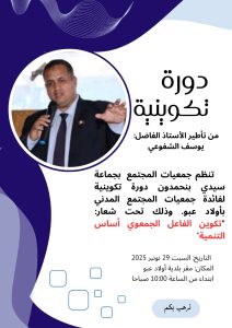 اللقاء الذي يندرج ضمن برنامج تكويني هادف، أطره الدكتور يوسف الشفوعي، حيث قدّم عرضاً غنياً حول آليات مساهمة الجمعيات في التنمية المحلية من خلال التأطير والترافع، مع التأكيد على دورها كمكوّن أساسي في إنجاح النموذج التنموي القروي عبر شراكات فعالة ومقاربة تشاركية،وتكتسي هذه المبادرة أهمية خاصة بالنظر للطابع القروي الذي يميز أولاد عبو والمناطق المحيطة بها، حيث تلعب الجمعيات دوراً محورياً في ملء فراغات البنيات الاجتماعية والاقتصادية، وتُعد فاعلاً مكملاً للمؤسسات الرسمية،وفي ختام الدورة، تم تقديم شواهد تقديرية للمشاركين، وسط أجواء إيجابية وتفاعلية،كما تتقدم الجمعيات المشاركة بجزيل الشكر والتقدير للسلطات المحلية، وعلى رأسها السيد الباشا، وللسيد رئيس المجلس البلدي بأولاد عبو حمدون خبير على مساهمته في إنجاح هذا الموعد التكويني، من خلال توفيره فضاء لإقامة الدورة، مما يعكس روح التعاون والتكامل بين المجتمع المدني والسلطة والمجالس المنتخبة في خدمة الصالح العام.