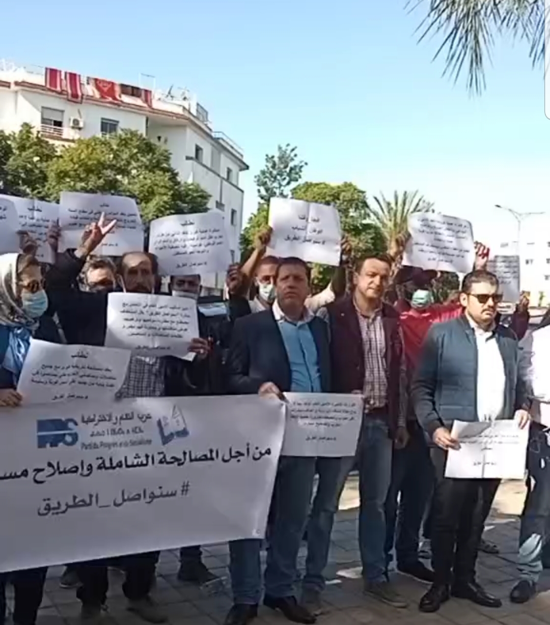 هذه الوقفة التي جاءت متزامنة مع انعقاد الدورة الثامنة للجنة المركزية للحزب صبيحة يوم السبت 30 أكتوبر 2021، بعد أن تم تغيير مقر انعقادها الذي كان مقررا بمقر الحزب ، تبقى الاشارة انه منعهم من دخول بقاعة الاجتماع اسكن في المحتجون برفع شعارات التنديد و المحاسبة و تحكيم العقل من أجل إصلاح جذري لما انتاب الحزب من فساد.
